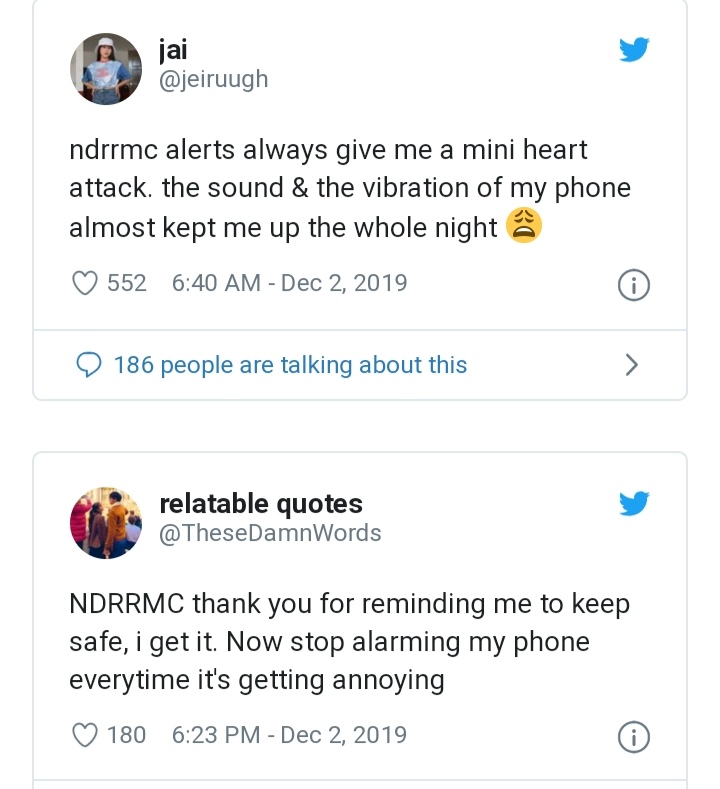 Many mobile phone users found these alerts as an alarming and to keep everyone safe and informed. In addition, other Twitter users appreciated the efforts of the NDRRMC and see the minor inconvenience a “mini-heart attack” causes to be a small price to pay safety and awareness.